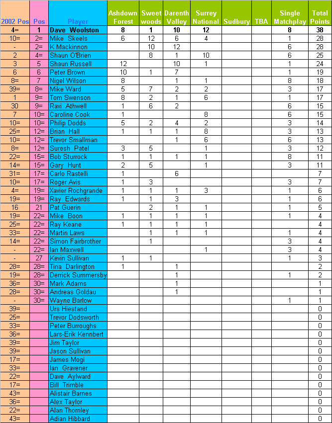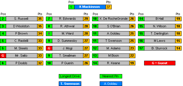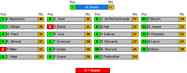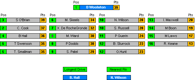 All Positions decided by countback where necessary.