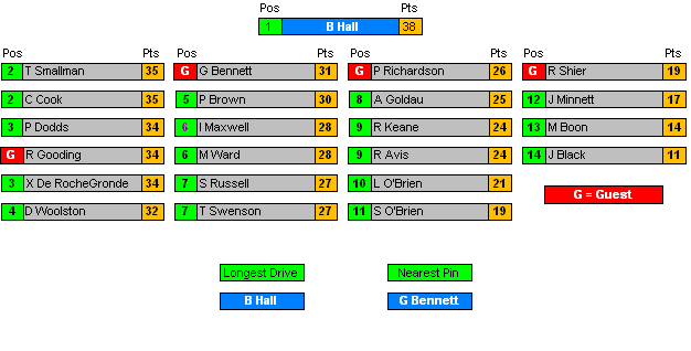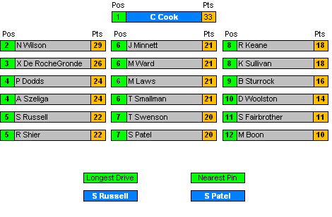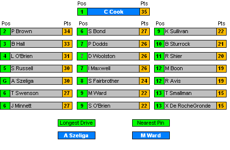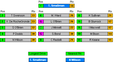 All Positions decided by countback where necessary.
