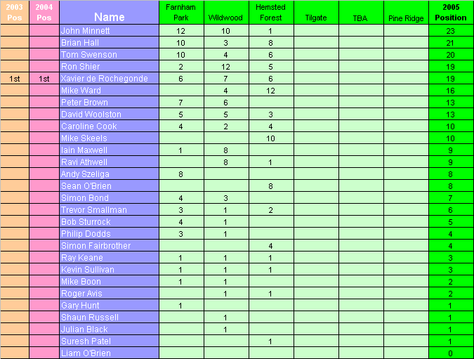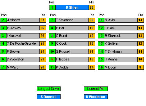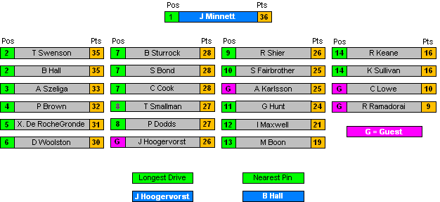 All Positions decided by countback where necessary.