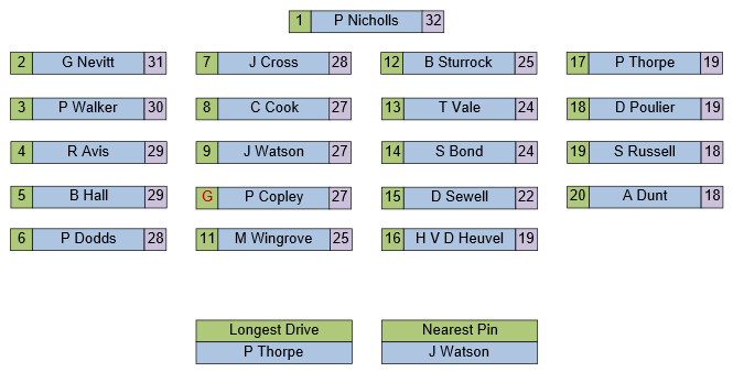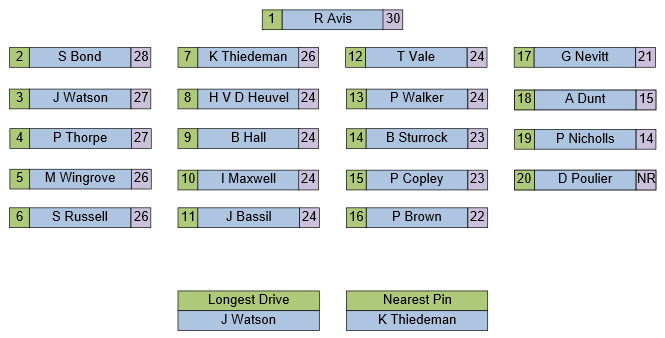 All Positions decided by countback where necessary.