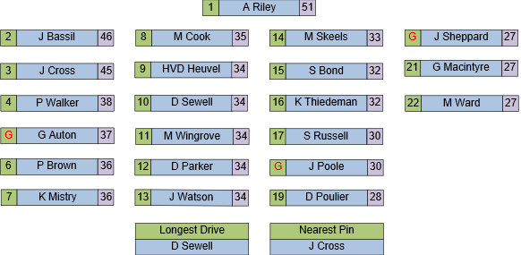 All Positions decided by countback where necessary.
